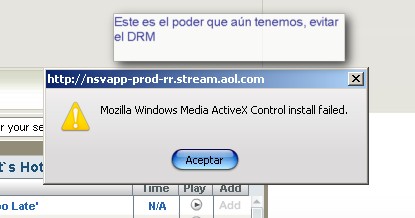 No me gusta la idea de que un código diga qué puedo o no hacer, es más, al ser tan oscuros y ocultos, tan obtusos, tan intrigantes, tan conspiradores, al mostrar tan poca confianza por parte de la industria del entretenimiento en el consumidor, al no saber qué más hacen o acabarán haciendo en mi ordenador, pues sencillamente ya no lo quiero… Cuando veo cualquier cosa que tenga DRM (y parece que el nuevo servicio de AOL de video lo lleva) pues como que no consumo. Es más, no necesito consumir, no necesito nada que tenga DRM. ¡ Hey Industria de Entretenimiento ! ¿Me entienden? ¿Lo digo en algún idioma que entiendan… DRM=No sales, no my money, no bussiness for you!!!!