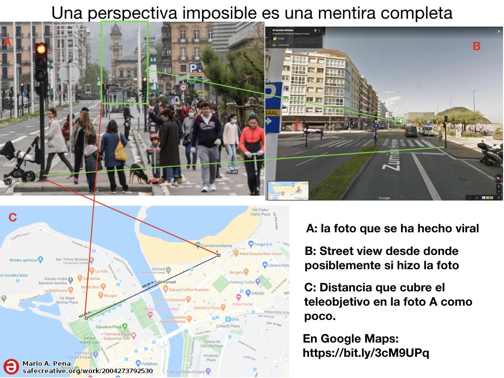 Un amigo me dijo una vez que una media verdad es una mentira completa. Usar una perspectiva exagerada a la hora de toma una fotografía es igual que una mentira completa. No tengo ni claro que no haya más manipulación, cuando vuelva a salir a la calle tengo que mirar un par de cosas, pero esta imagen que se ha hecho viral es una mentira completa.